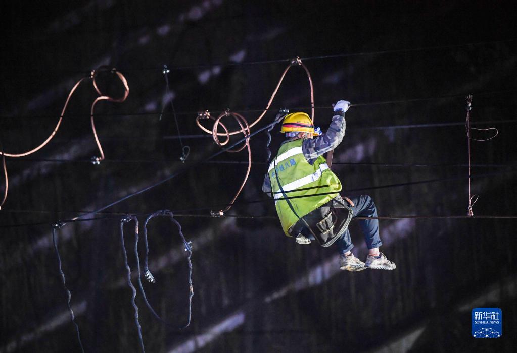 9月1日凌晨,施工人員在重慶鐵路樞紐東環(huán)線(xiàn)磨心坡站作業(yè)。新華社記者 王全超 攝