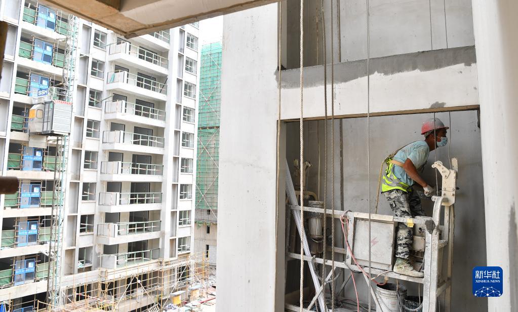 9月2日,工人在??诮瓥|新區東寨新居一期項目施工現場(chǎng)作業(yè)。
