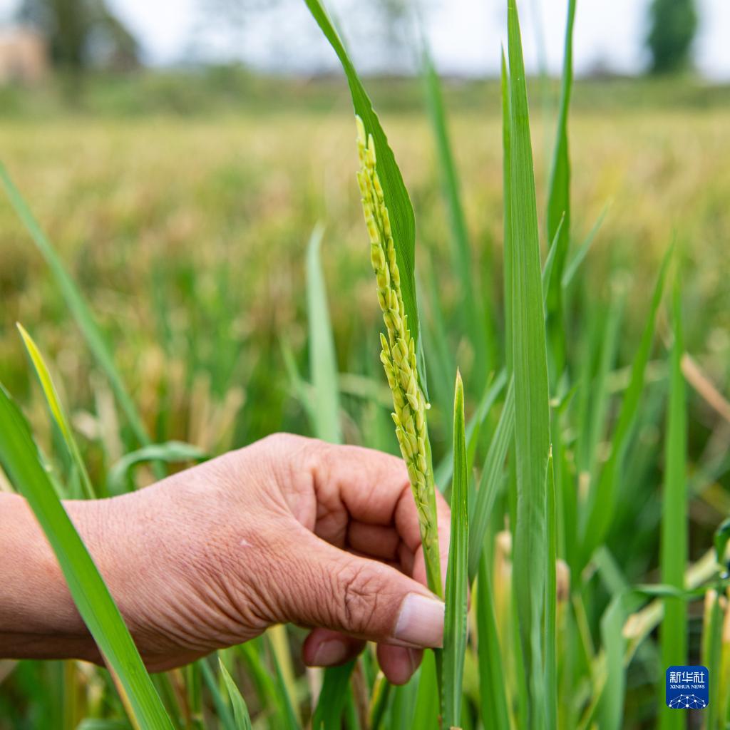 9月1日,在重慶市梁平區安勝鎮,再生稻技術(shù)專(zhuān)家黃華查看再生稻的生長(cháng)情況。