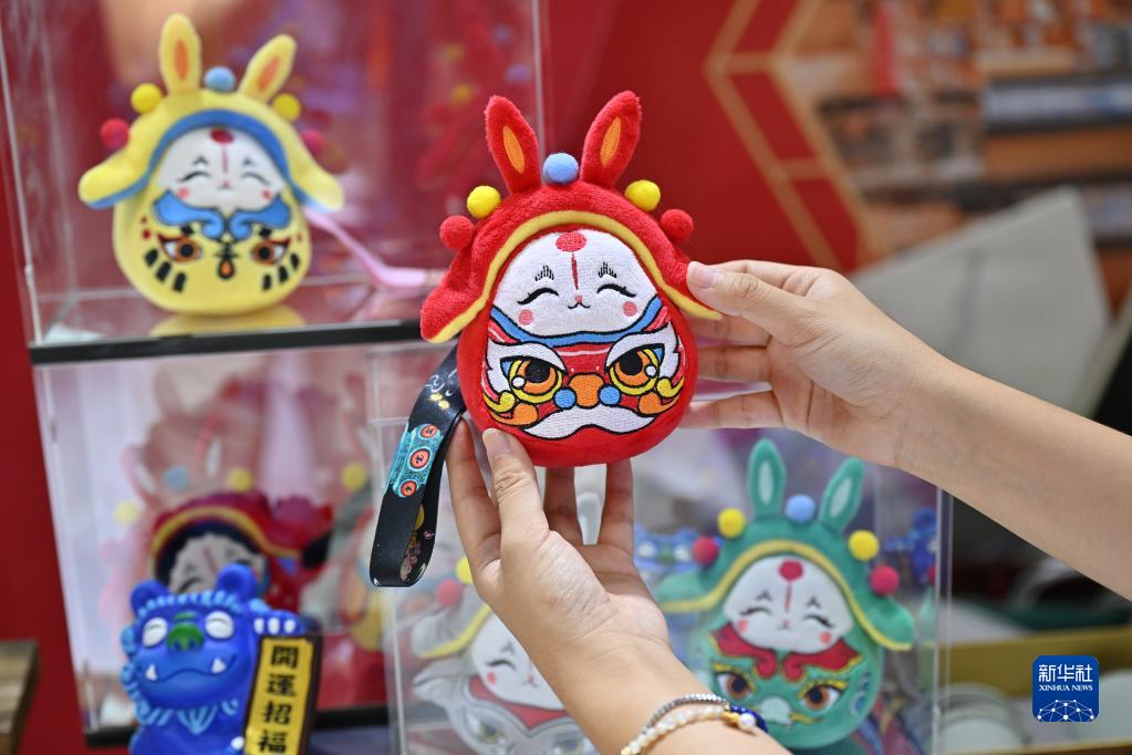9月2日,工作人員展示一款兔爺文創(chuàng )產(chǎn)品。新華社記者 李鑫 攝