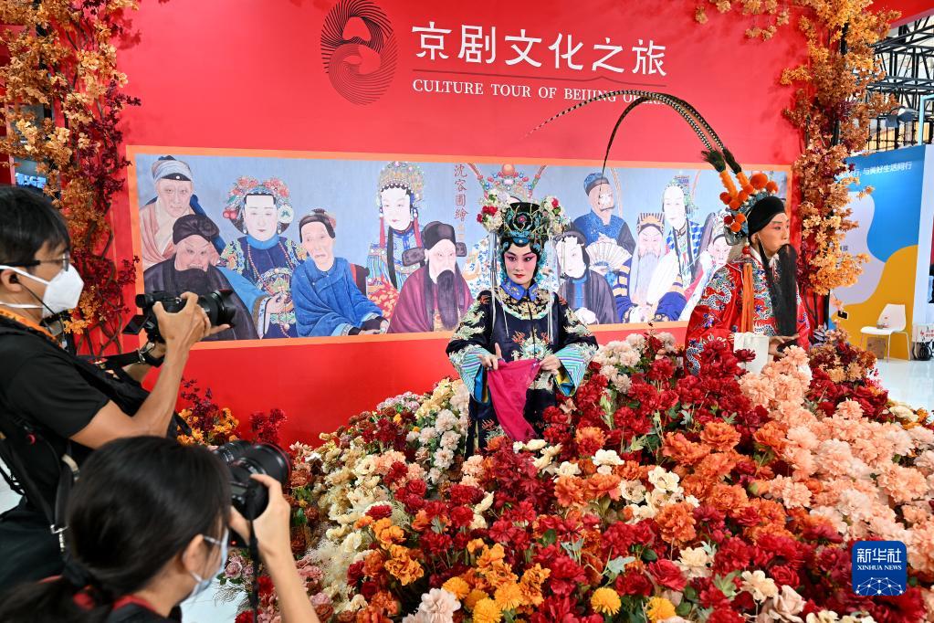 9月2日,在文旅服務(wù)專(zhuān)題展區,觀(guān)眾在北京文旅展臺拍攝京劇表演展示。