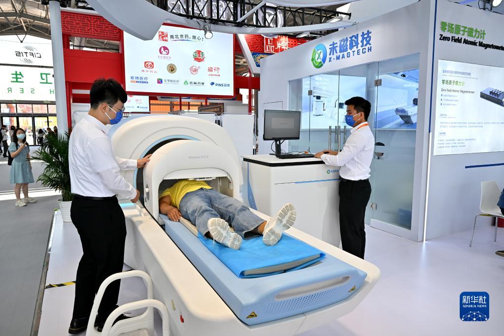 9月2日,觀(guān)眾在健康衛生服務(wù)專(zhuān)題展區體驗展出設備。