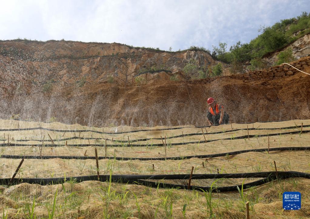 2022年6月2日,在位于石家莊市井陘縣威州鎮南固底村的河北省太行山區礦山掌子面治理技術(shù)試驗項目現場(chǎng),工作人員在檢查噴淋設備。