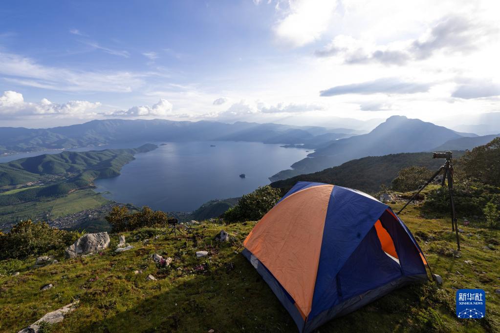 從牛窩子山山頂遠眺瀘沽湖(9月1日攝)。