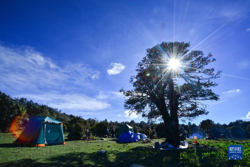 在牛窩子山山頂,游客在露營(yíng)(9月1日攝)。