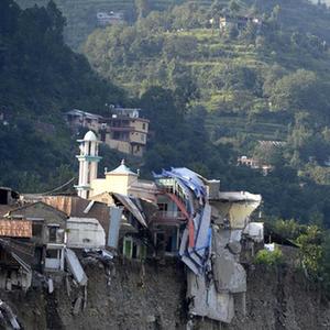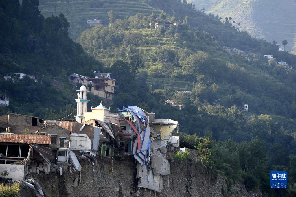 這是9月1日在巴基斯坦開(kāi)伯爾-普什圖省斯瓦特地區拍攝的被洪水損毀的房屋。