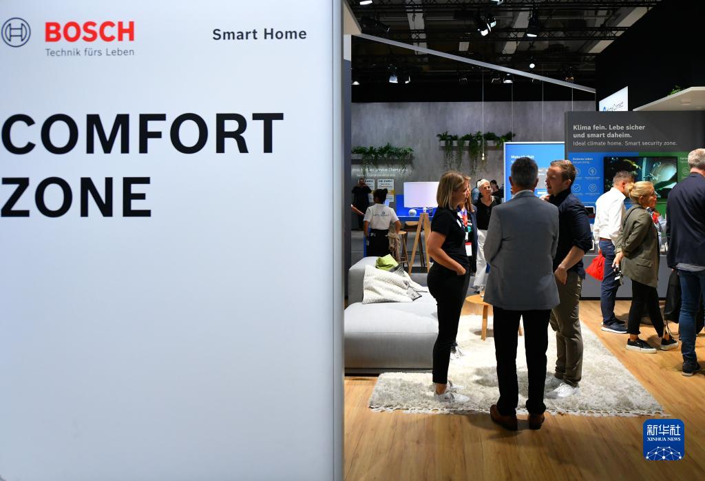 9月2日,在德國柏林國際消費電子展上,人們在博世展區交談。