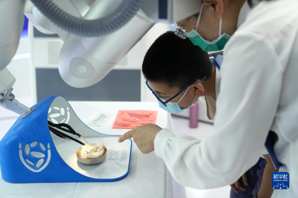 9月3日,觀(guān)眾在首鋼園區觀(guān)看一款手術(shù)機器人演示。