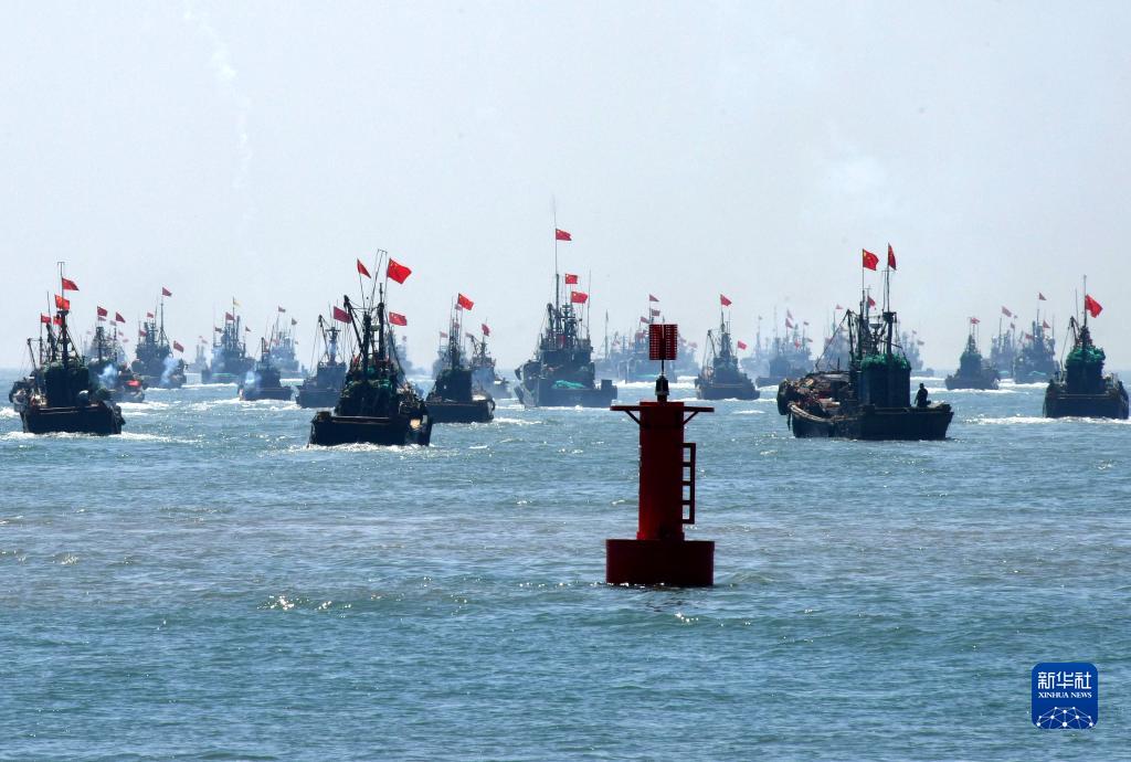 9月1日,在青島西海岸新區積米崖海域,漁船駛離碼頭。當日,黃渤海為期4個(gè)月的休漁期結束,所涉漁區漁船陸續出海,有序開(kāi)展秋汛捕撈作業(yè)。
