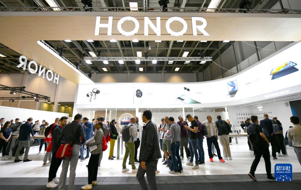 這是9月2日在德國柏林國際消費電子展上拍攝的榮耀展區。