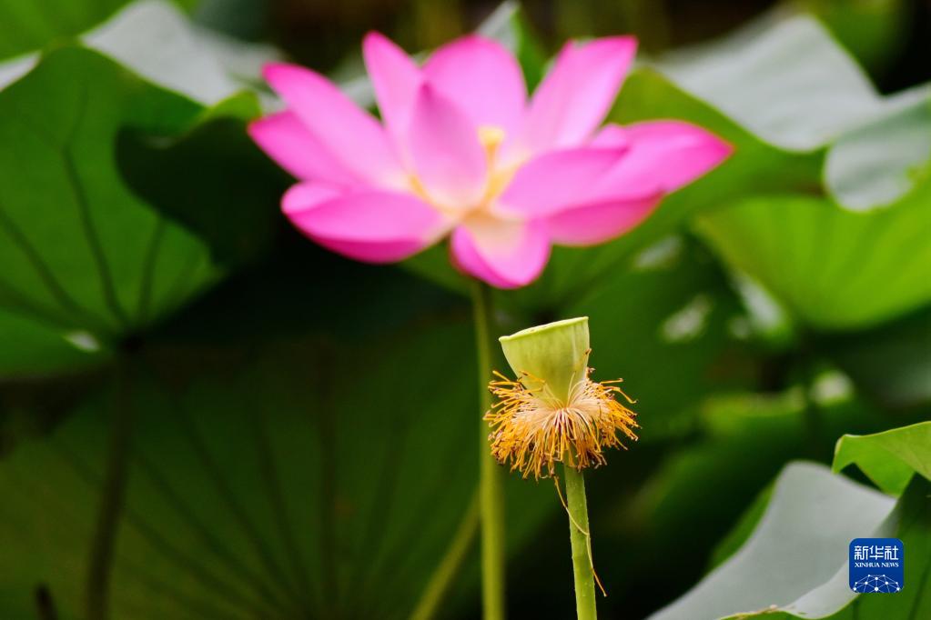 9月1日在江蘇省如皋市如城街道紀莊社區一處荷塘里拍攝的荷花和蓮蓬。