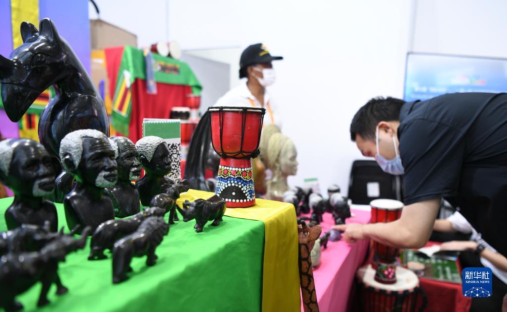 9月4日,參觀(guān)者在首鋼園區津巴布韋展臺了解特色產(chǎn)品。