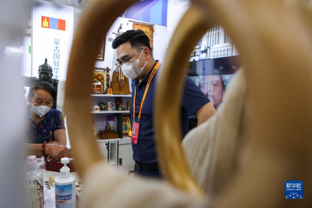 9月4日,在首鋼園區,觀(guān)眾參觀(guān)蒙古國駐華大使館展位。