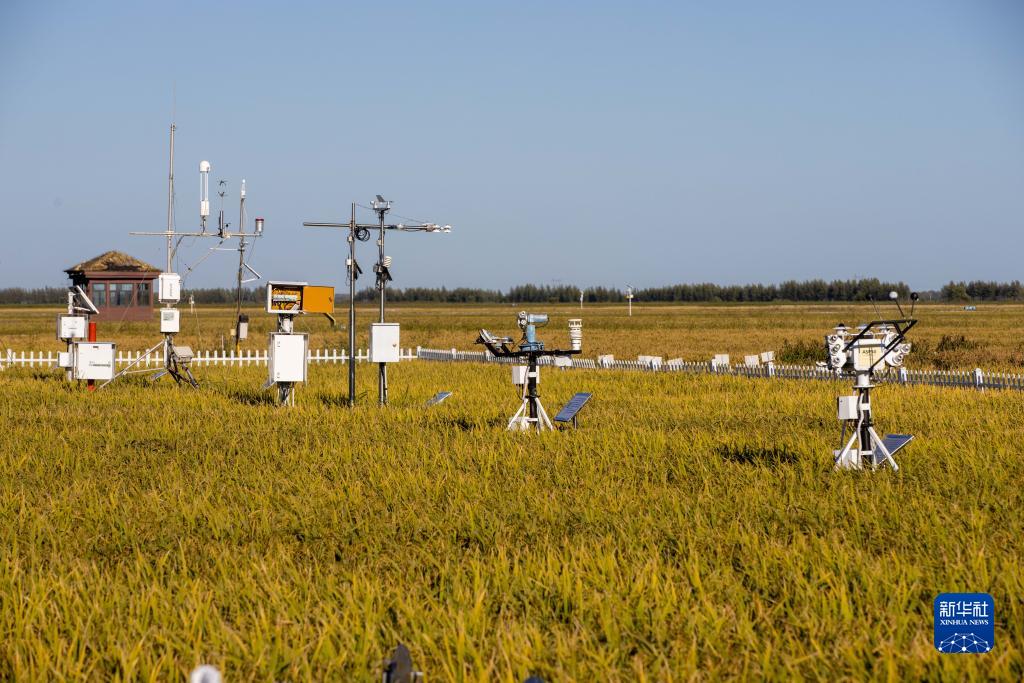 9月2日拍攝的富錦市萬(wàn)畝水稻科技示范園內的氣象監測設備。