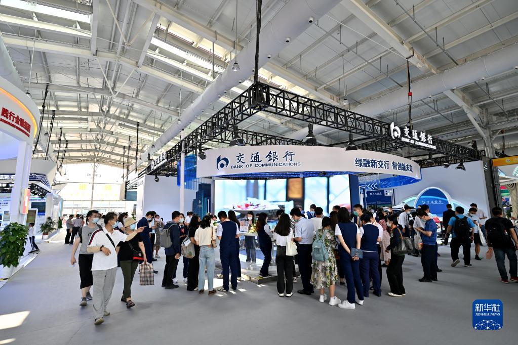9月4日,在服貿會(huì )首鋼園區金融服務(wù)專(zhuān)題展交通銀行展臺,觀(guān)眾們咨詢(xún)和辦理業(yè)務(wù)。 新華社記者 李鑫 攝