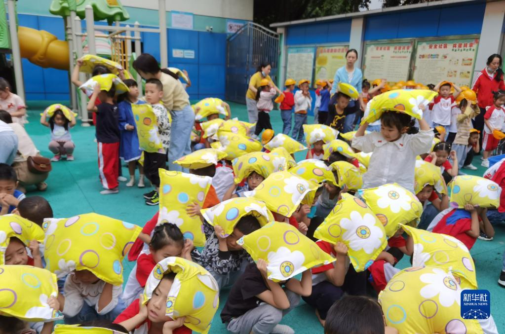 9月5日,雅安市石棉縣幼兒園老師組織幼兒有序疏散到操場(chǎng),并對幼兒進(jìn)行心理疏導。