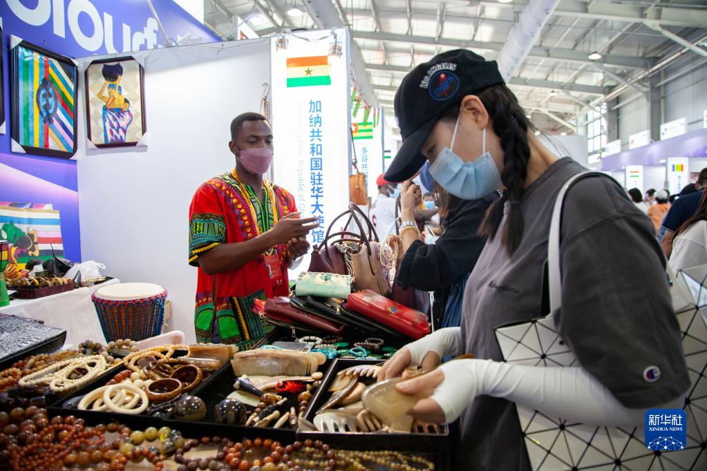 9月5日,觀(guān)眾在服貿會(huì )首鋼園區的文旅服務(wù)專(zhuān)題展區加納展臺挑選商品。