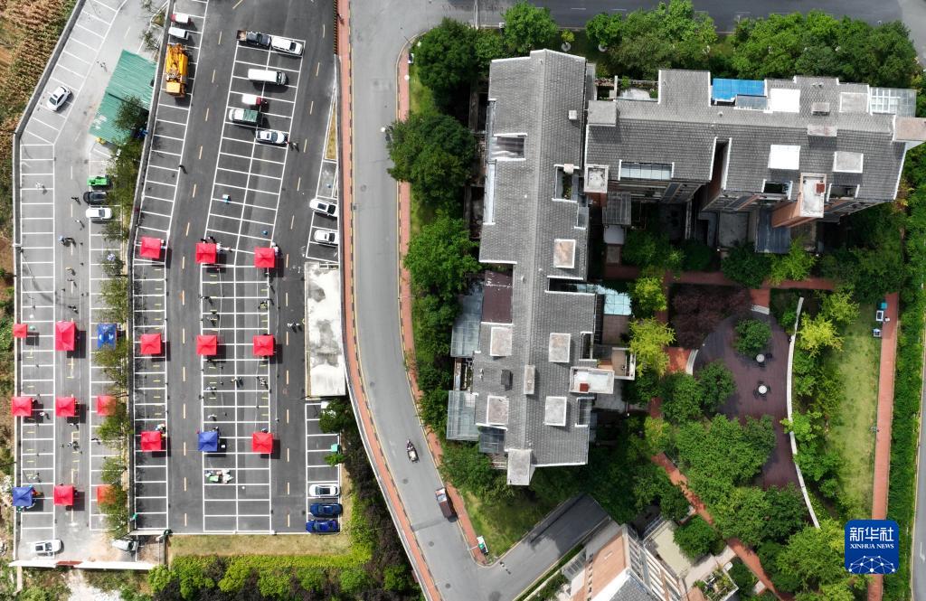 這是9月5日拍攝的貴陽(yáng)市烏當區新光路街道一居民小區核酸篩查點(diǎn)現場(chǎng)(無(wú)人機照片)。
