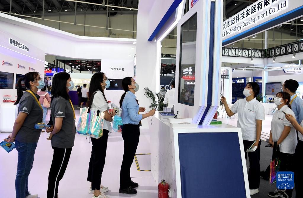 9月5日,參展人員在2022年國家網(wǎng)絡(luò )安全宣傳周網(wǎng)絡(luò )安全博覽會(huì )上進(jìn)行“三防”科普互動(dòng)。