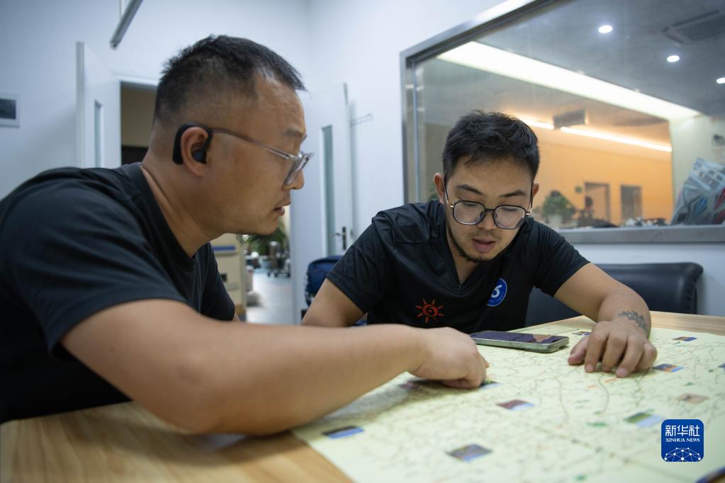 7月16日,在“川藏線(xiàn)”自駕出發(fā)前,何鵬(右)和朋友一起確定行程路線(xiàn)。