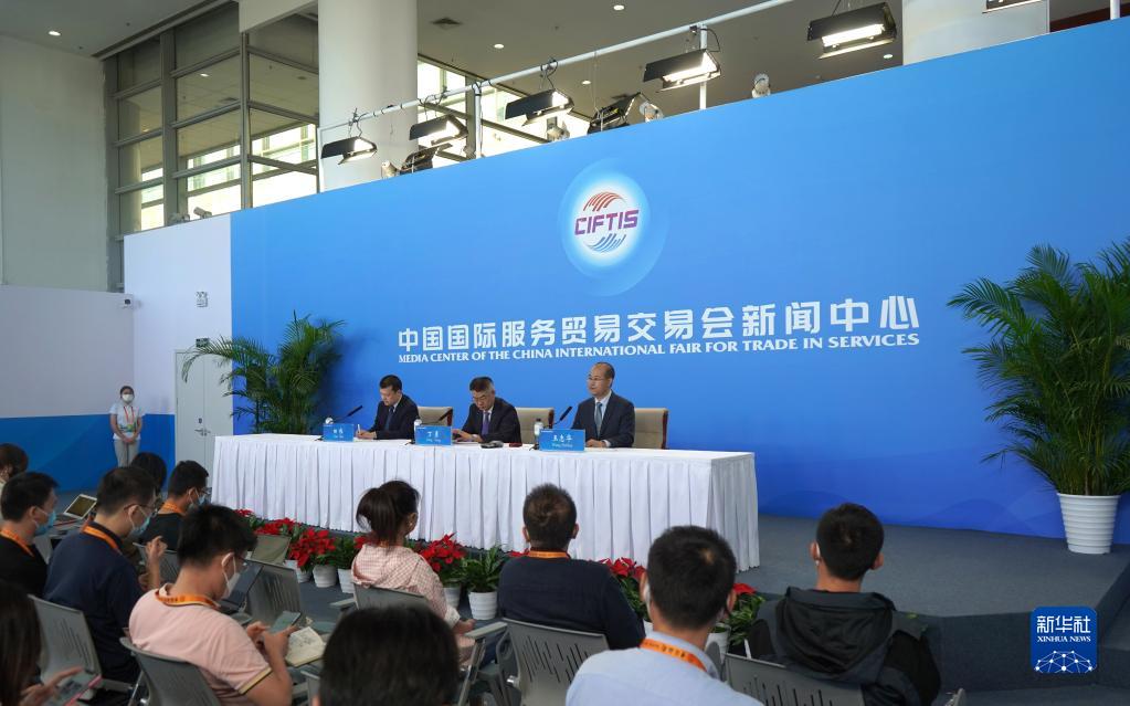 這是9月5日拍攝的2022年中國國際服務(wù)貿易交易會(huì )新聞發(fā)布會(huì )現場(chǎng)。