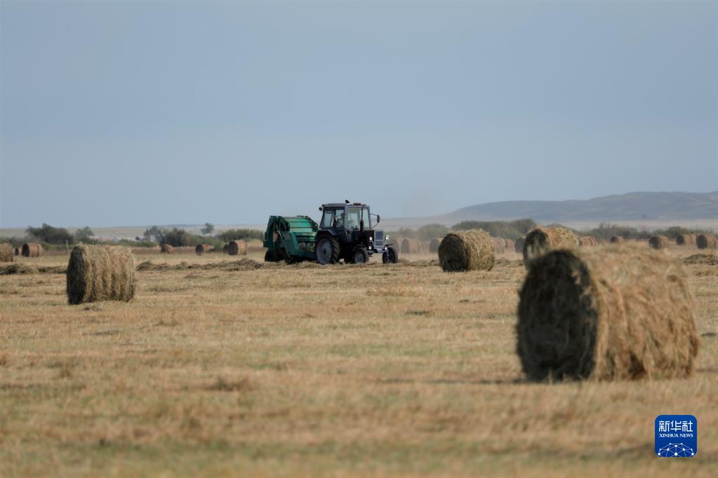 哈薩克斯坦北部地區9月進(jìn)入牧草集中收割的季節,成片的牧草被牧民收割、曬干并捆成草垛,以備牲畜在冬季食用。新華社發(fā)(奧斯帕諾夫攝)