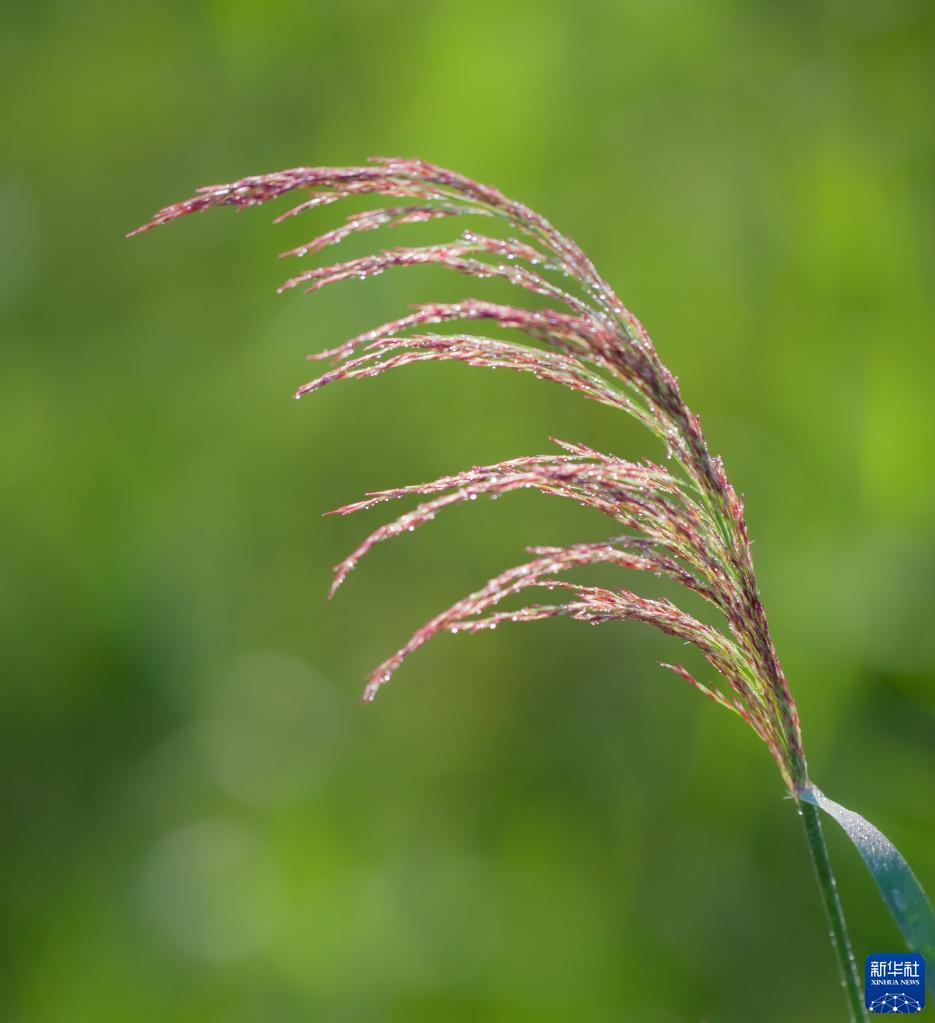 9月4日,在山東省淄博市高青縣,蘆葦上結滿(mǎn)露珠。