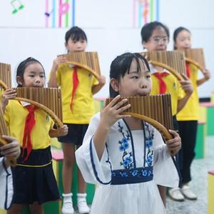9月6日,杭州市舜天樂(lè )器廠(chǎng)的排簫藝人郭新明在給板橋鎮板橋小學(xué)的學(xué)生上排簫課。該校結合當地竹笛樂(lè )器廠(chǎng)資源豐富的特點(diǎn),開(kāi)設了排簫課、葫蘆絲課、竹笛課等,引導孩子們學(xué)習和傳承中國傳統樂(lè )器。