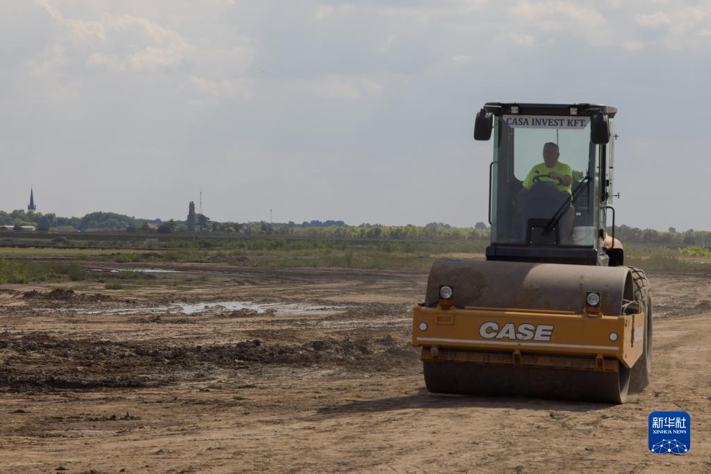 9月5日,在匈牙利德布勒森,工人駕駛壓路機在寧德時(shí)代匈牙利工廠(chǎng)工地上施工。