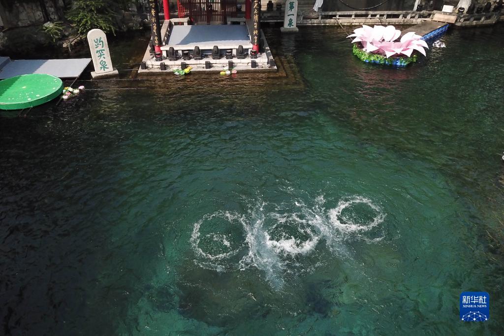 9月6日,濟南趵突泉泉水噴涌(無(wú)人機照片)。