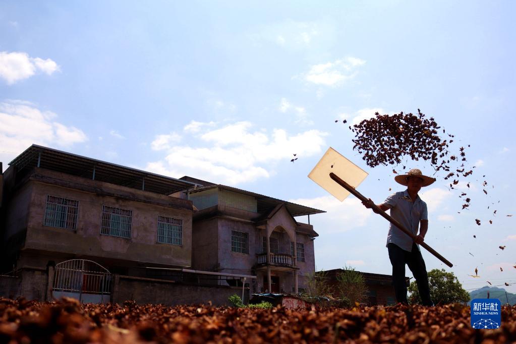 9月6日,在廣西金秀瑤族自治縣大樟鄉大樟村,村民趁著(zhù)晴好天氣曬八角。