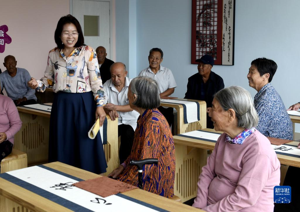 9月6日,在山東省濱州市沾化區康教醫養綜合服務(wù)中心國學(xué)堂,院長(cháng)高子美在為老人講解疫情防控知識。