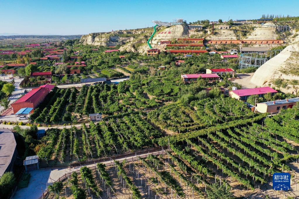 9月6日拍攝的托克托縣郝家窯村的葡萄園(無(wú)人機照片)。