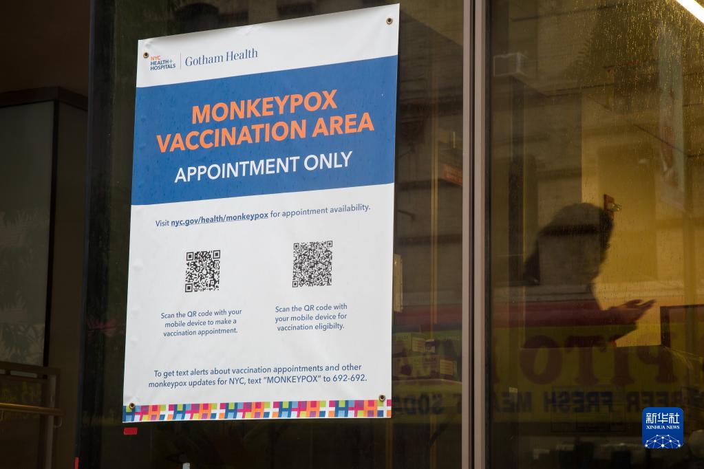 這是9月6日在美國紐約拍攝的一處猴痘疫苗接種點(diǎn)的告示。