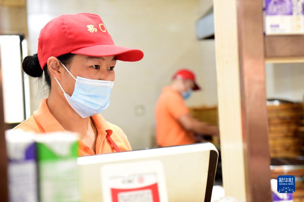 9月6日,王素俠(左)在早餐店內為顧客點(diǎn)餐。