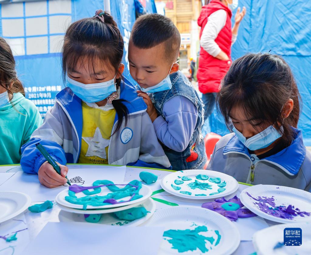 9月6日,四川省甘孜州瀘定縣磨西鎮在地震救災安置點(diǎn)里開(kāi)設了一個(gè)青青兒童樂(lè )園,通過(guò)做游戲等方式對這里的孩子進(jìn)行安撫。此后還將有更多青青兒童樂(lè )園在安置點(diǎn)里陸續設立。