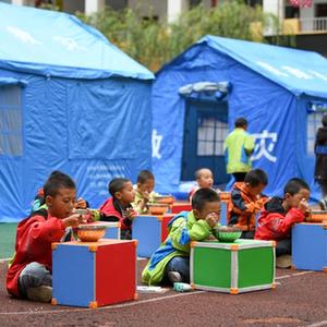 9月7日,學(xué)生們在石棉縣草科鄉中心小學(xué)內吃午飯。