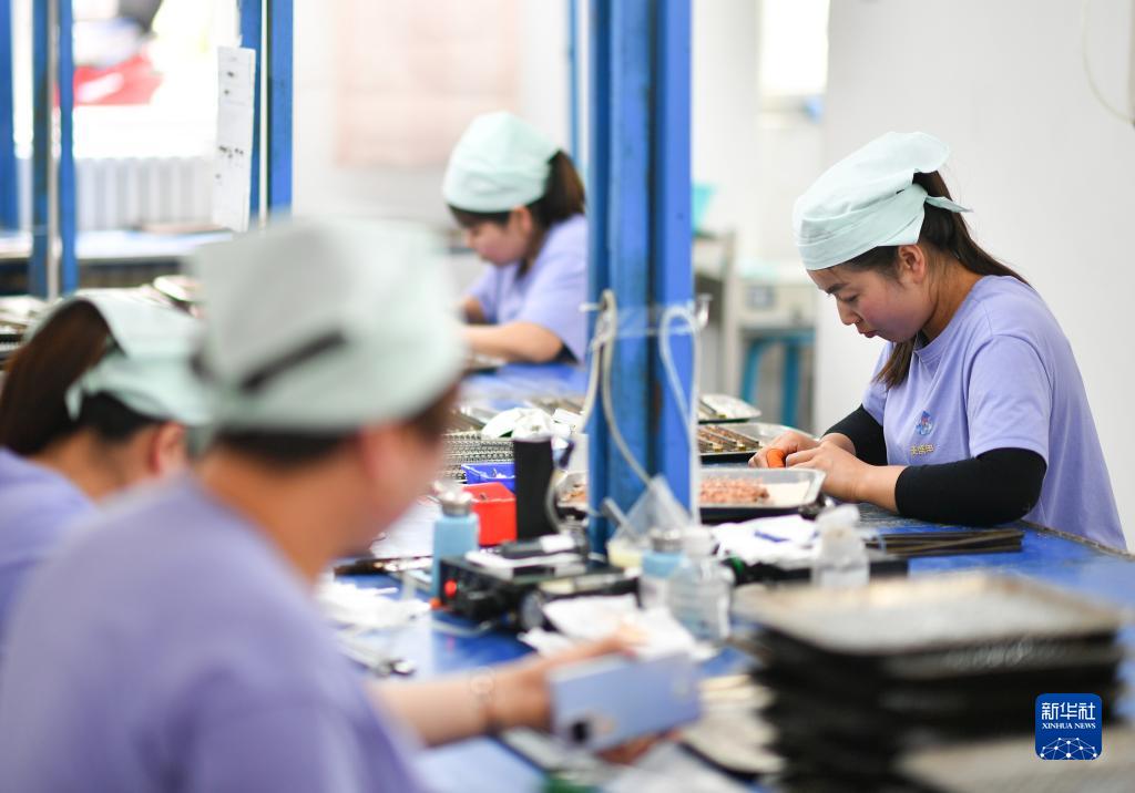 9月6日,工作人員在麟游縣九成宮鎮官坪社區配建的社區工廠(chǎng)加工電子元件。