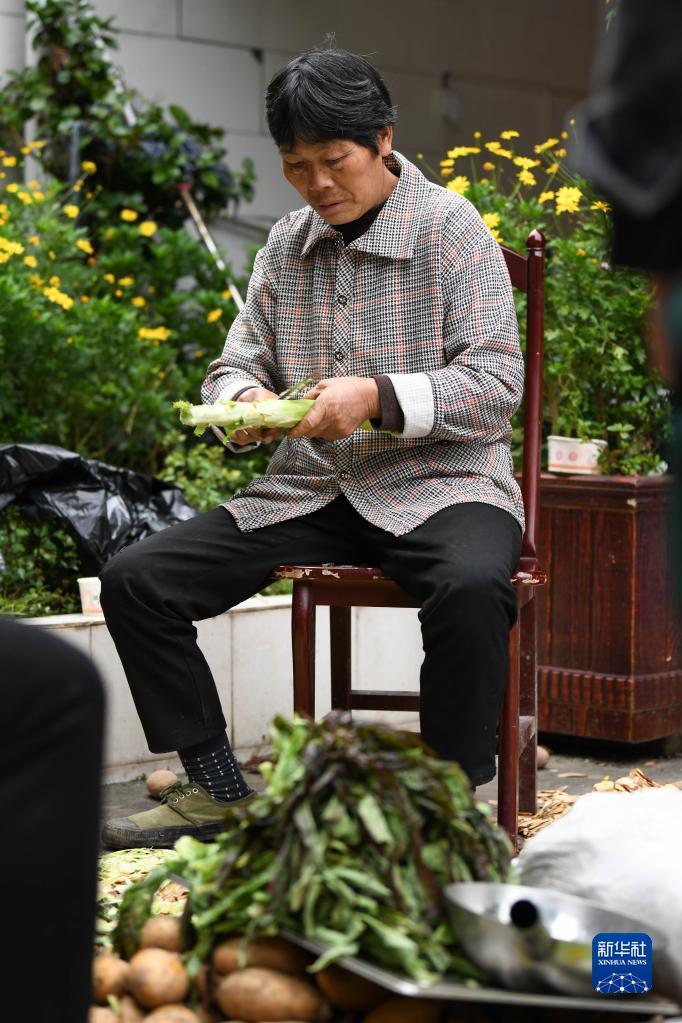 9月7日,在石棉縣草科鄉政府安置點(diǎn)內,當地群眾在準備午飯。地震發(fā)生后,該地與外界短暫失聯(lián),村民們自發(fā)拿出家中食物作為大家共享的生活物資。