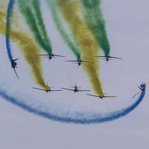 9月7日,飛機在巴西里約熱內盧科帕卡巴納海灘上空進(jìn)行飛行表演,慶祝巴西獨立200周年。