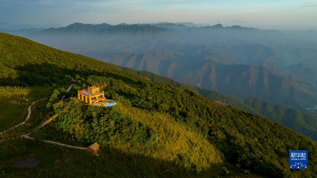 一縷朝陽(yáng)照耀著(zhù)漢江源風(fēng)景區茂密的森林(9月7日攝,無(wú)人機照片)。這里生物的多樣性與森林的季節變化造就了原始森林、竹林、杜鵑花海和秋山紅葉等豐富景觀(guān),吸引眾多游客。