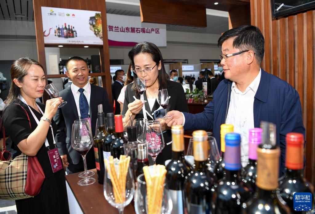 9月7日,嘉賓在賀蘭山葡萄酒展銷(xiāo)會(huì )現場(chǎng)品鑒葡萄酒。