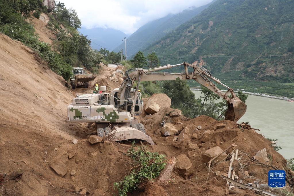 9月8日,西部戰區陸軍第77集團軍某工兵旅官兵在雅安市石棉縣進(jìn)行道路搶通作業(yè)。新華社發(fā)(黃欽 攝)