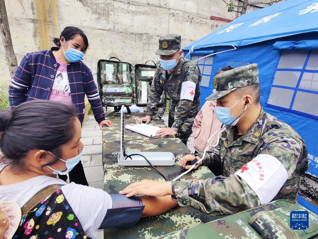 9月7日,武警第二機動(dòng)總隊某支隊官兵為瀘定縣地震災區群眾開(kāi)展巡診活動(dòng)。新華社發(fā)(李天標 攝)