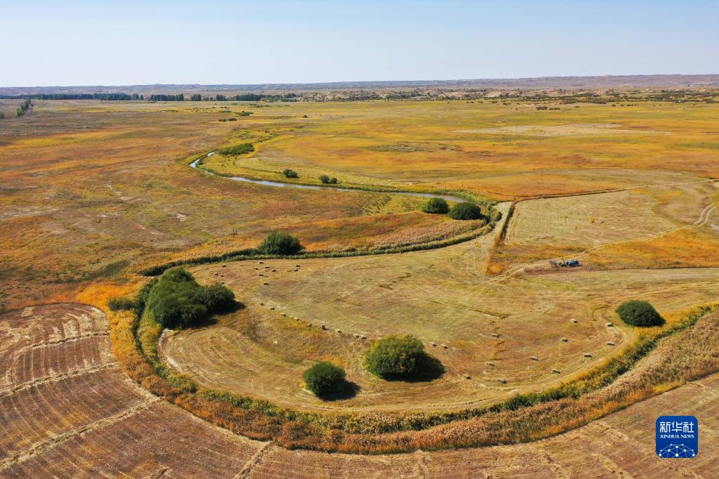 這是在錫林郭勒盟阿巴嘎旗拍攝的秋日草原(9月8日攝,無(wú)人機照片)。