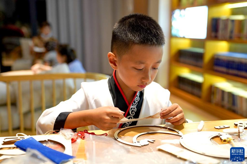 臨近中秋佳節,在江西省南昌市高新區的一家圖書(shū)館,市民身著(zhù)漢服體驗花燈制作、紙上刺繡等,在古風(fēng)古韻中迎接中秋佳節。