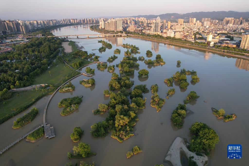 漢中市漢江濕地(5月16日攝,無(wú)人機照片)。