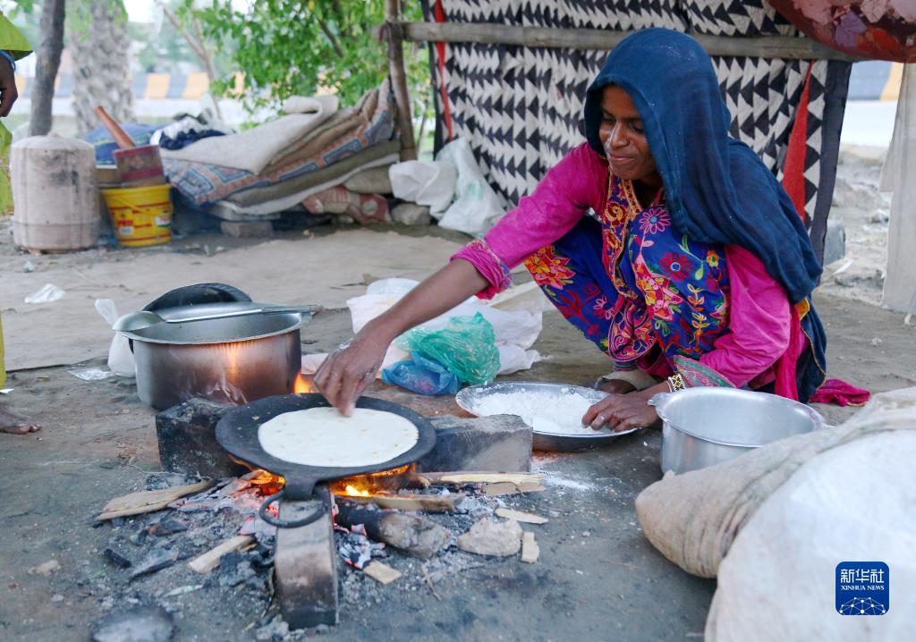 9月8日,在巴基斯坦信德省,受洪災影響的居民烹制食物。