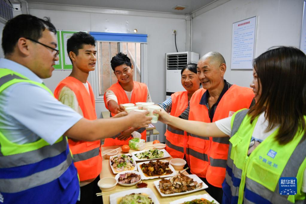 今年53歲的張志軍是中建三局西北公司的一名木工,早年外出務(wù)工的他曾赴北京、新疆、山東、甘肅等地工作,常年來(lái)與生活在四川老家的妻兒聚少離多。2010年,張志軍的妻子陳瓊賢也加入務(wù)工隊伍與丈夫相伴,與兩個(gè)兒子經(jīng)常相距千里。2013年,大兒子張勁松開(kāi)始跟隨父母工作。今年中秋節前夕,小兒子張虎從學(xué)校畢業(yè)后也應聘來(lái)到工地,一家四口時(shí)隔多年終于能夠在團圓中度過(guò)中秋佳節。建設方得知此事,專(zhuān)門(mén)為張志軍一家人安排了團圓飯表示祝福。