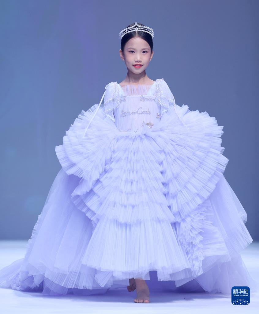 9月9日,小模特在北京中國國際時(shí)裝周(2023春夏系列)舉行的“AMORCODE”童裝發(fā)布會(huì )上展示童裝。